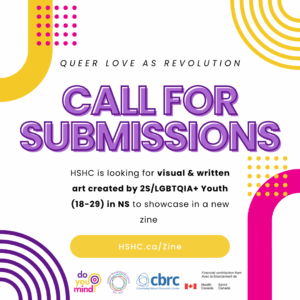 We are looking for short-form writing or art created by youth (18-29 years old) living in Nova Scotia that celebrates healthy queer relationships.